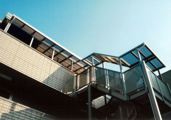 | 雨や風にさらされる屋外階段を、安全をかねてセンスアップする。 昇り降りする人を風雨から守るだけでなく、景観をスマートにイメージチェンジします。 スタイルもフラット屋根からドーム型まで多種多彩。段差のある階段、らせん状の階段、あらゆるタイプの外階段を端麗に保護します。 |